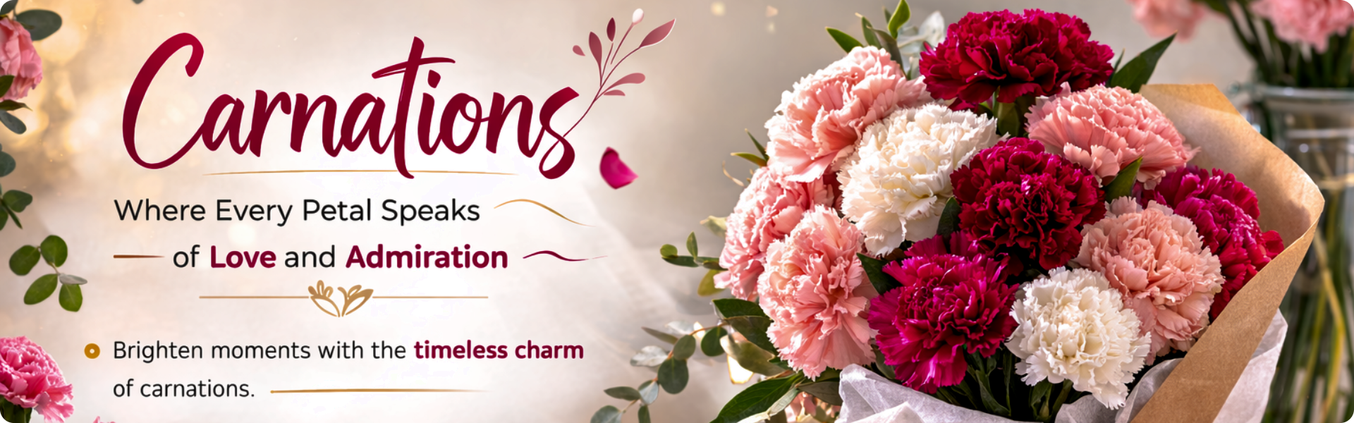 Carnations are elegant and long-lasting flowers suitable for birthdays and appreciation gifts. Available in beautiful colors with fresh delivery in Jaipur. A graceful choice for thoughtful gifting.