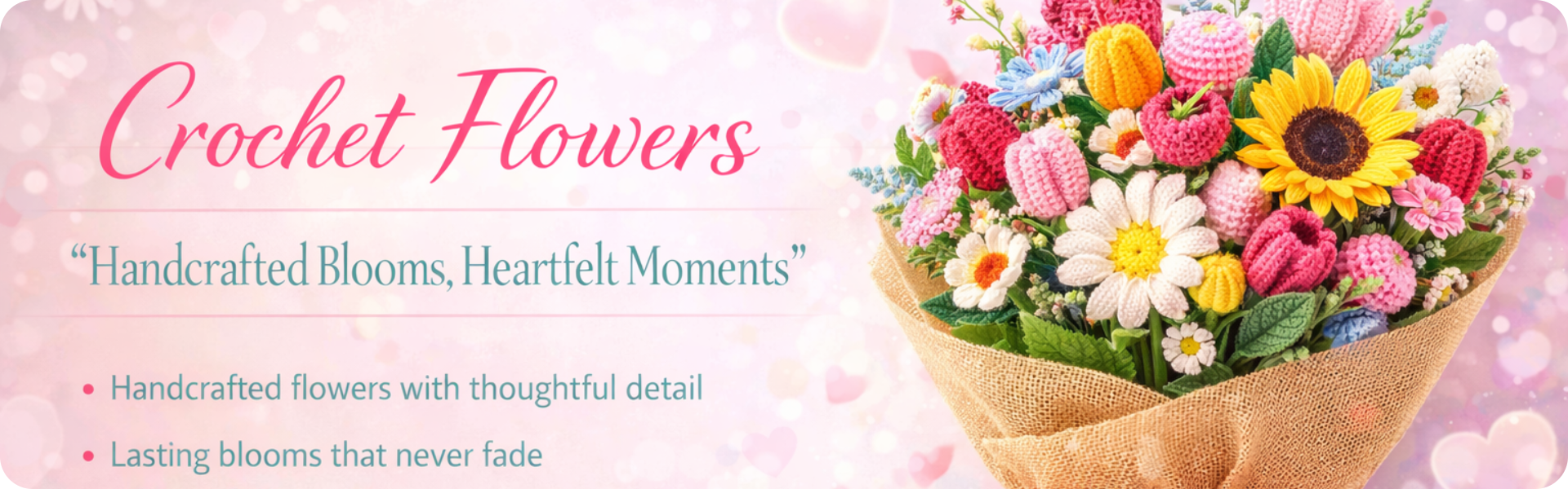 Crochet flowers are handmade, unique, and long-lasting gifting options. A creative and maintenance-free alternative to fresh flowers. Available for special gifting in Jaipur.