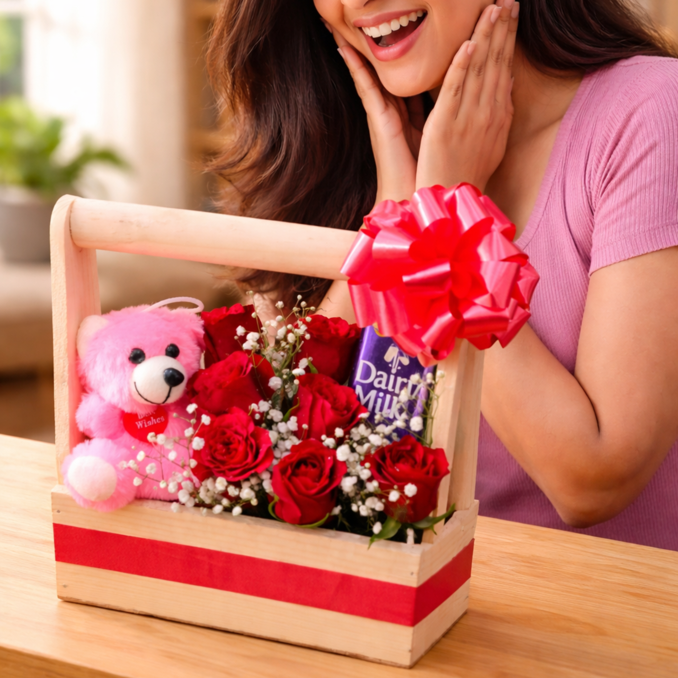 A Basket Arrangement of Chocolate Teddy