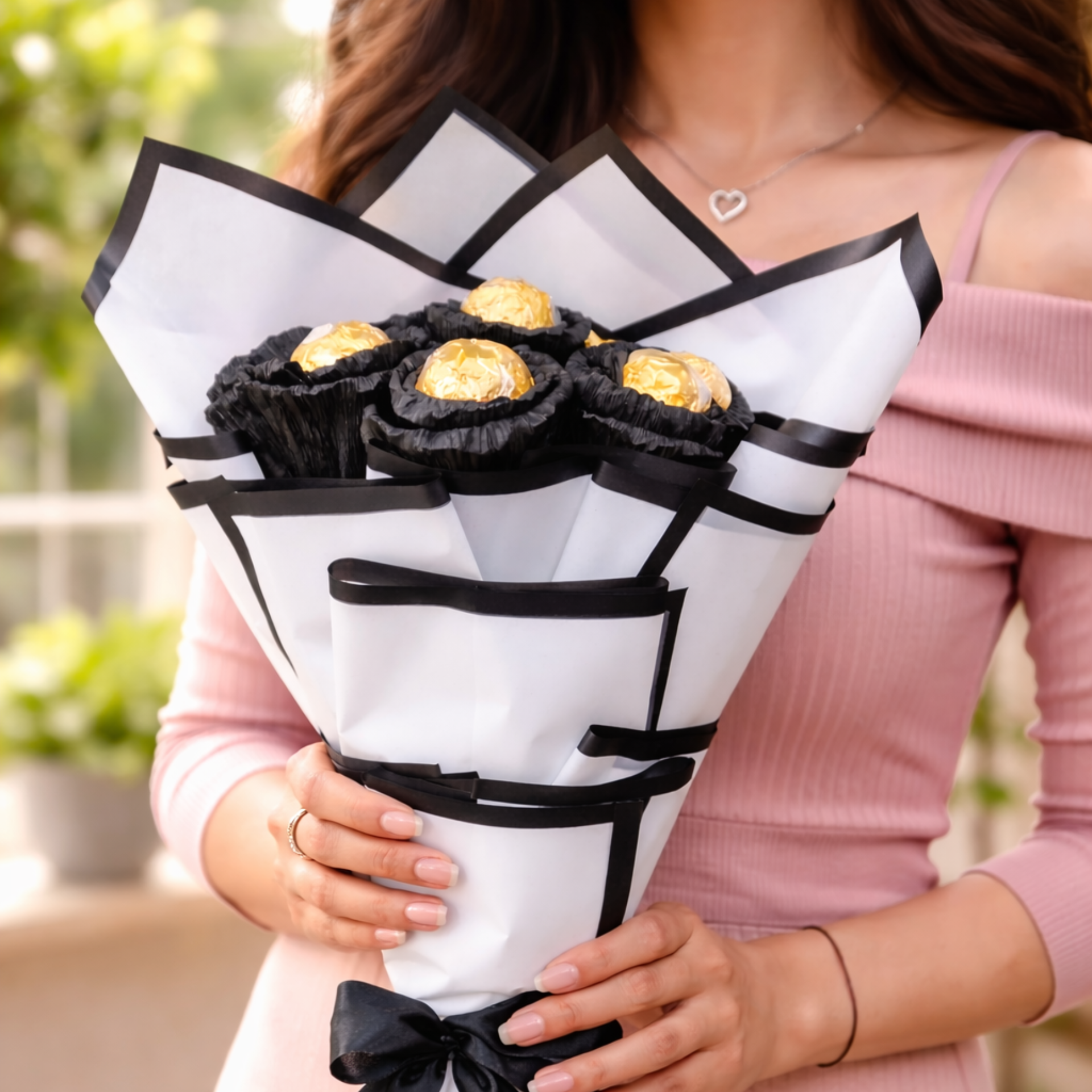 | A Special bouquet of Ferrero 8 pcs. Ferrero Rocher Chocolates Individual Wrapping of each chocolates Designer Wrapping with Korean sheet.