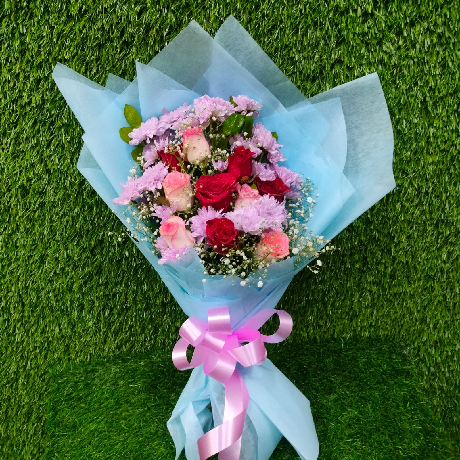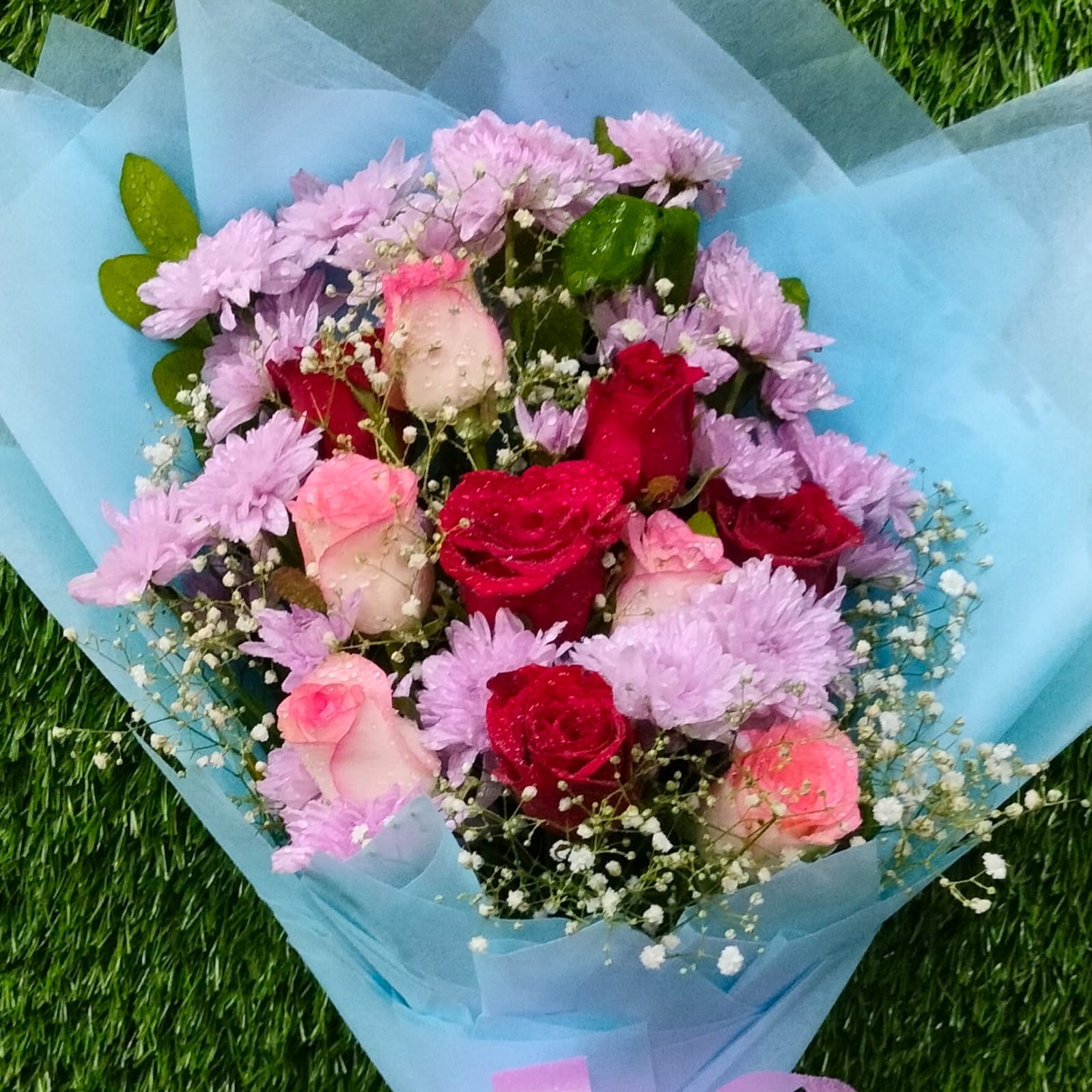 Wrapping with Sky blue Tissue
